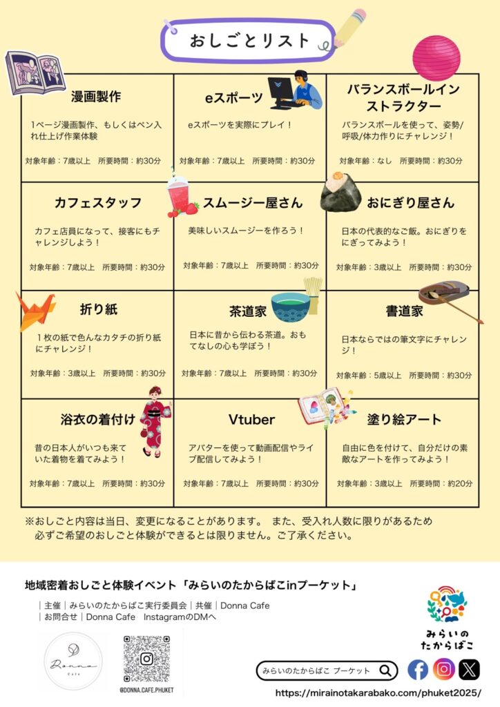 2025年5月11日(日)10:00〜16:00、Donna Cafeで開催される「みらいのたからばこ in Phuket」は、子どもたちに“未来のきっかけ”を届ける体験型イベント。